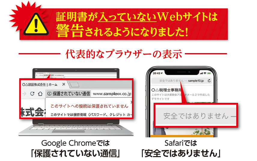それでも、最近はGoogle Chromeなどの主要なブラウザーが非SSLページで「安全ではない」という趣旨の警告文を表示するようになったことから、目に見えて危機意識が高まってきています。