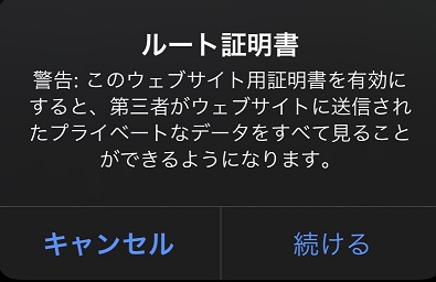 ※この時、以下の警告が表示される場合がありますが、「続ける」を選択してください