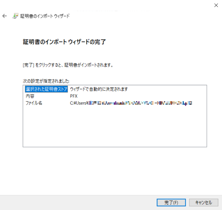 9.以上の操作で証明書のインポートは完了です。