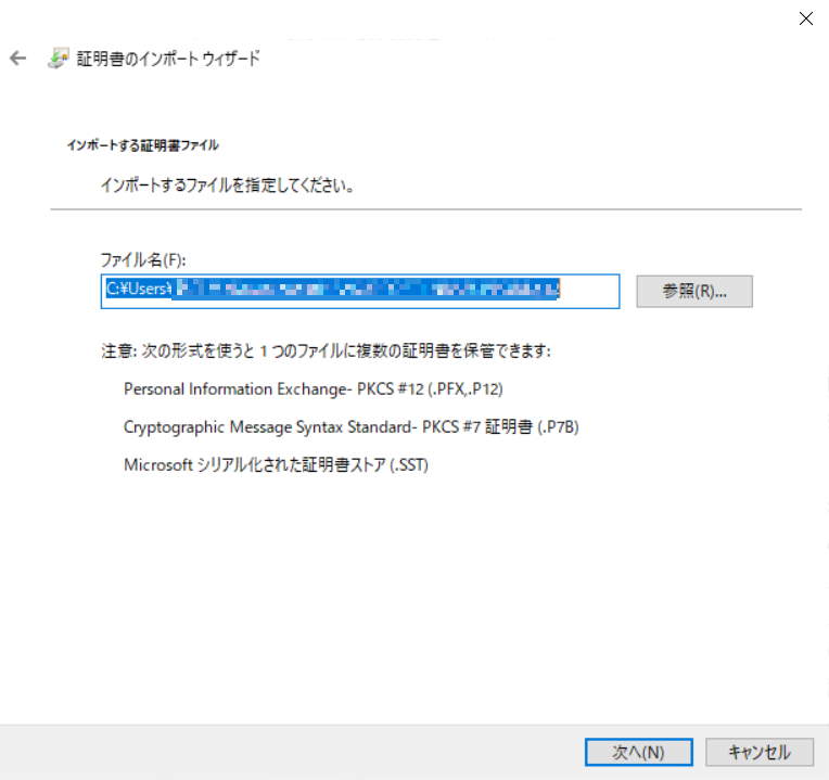 P12ファイルから証明書をインポートする