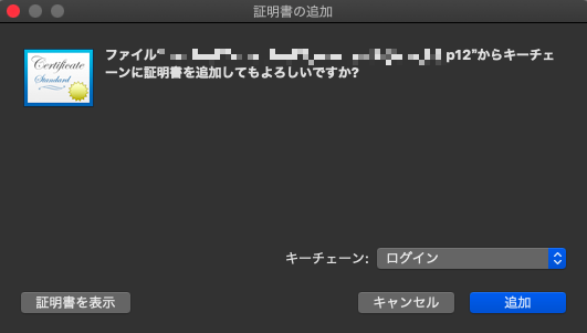 MacOSにクライアント証明書をインストールする際、キーチェーンの「ログイン」に格納できない