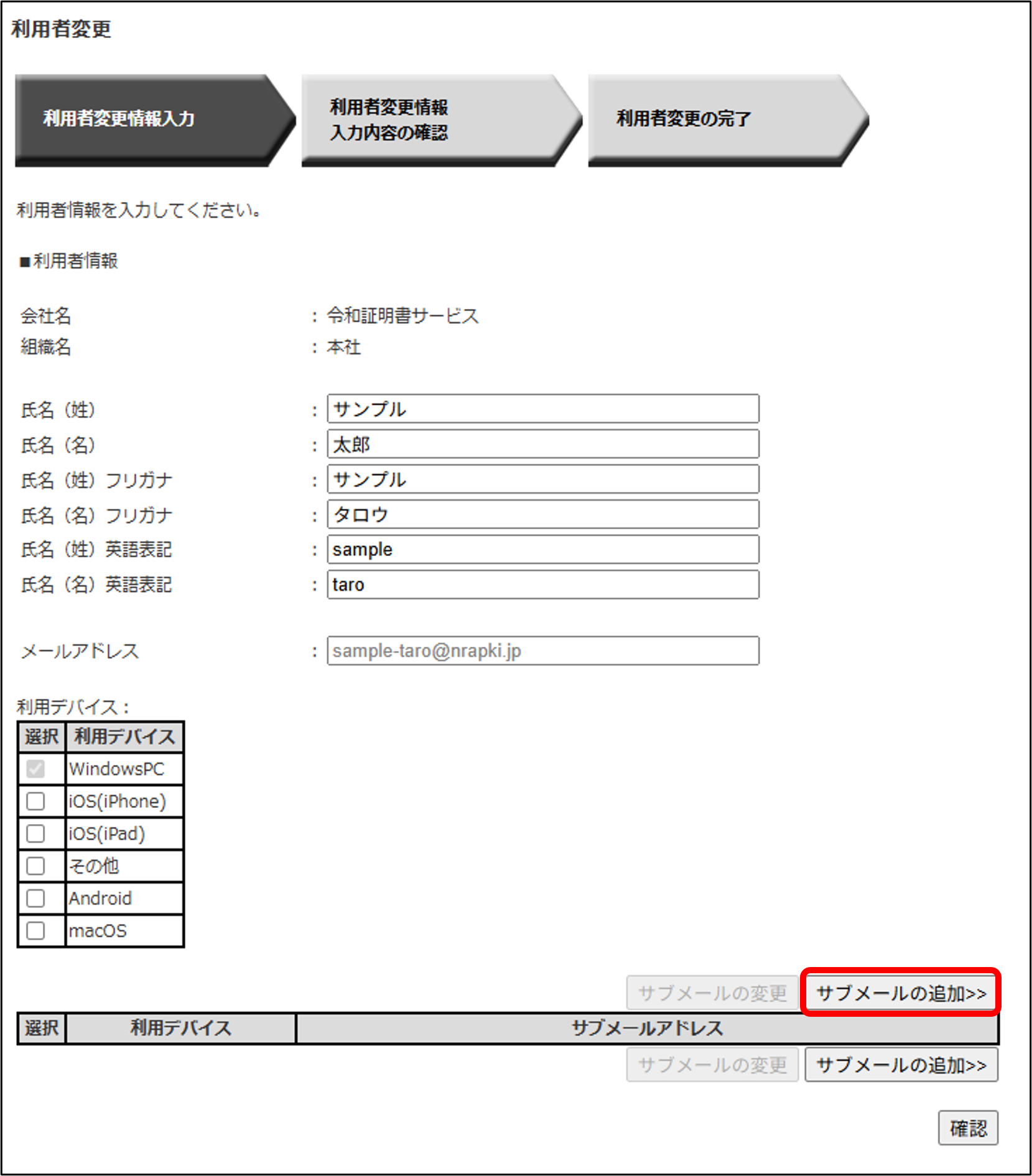 - 発行済みの証明書と利用デバイスが同じ種類の場合は「サブメールの追加方法」をご参照ください。