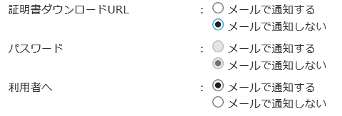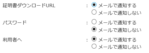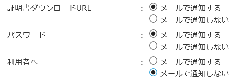 ※「証明書ダウンロードURL」「パスワード」の設定は管理者への通知に関しても適用されます。